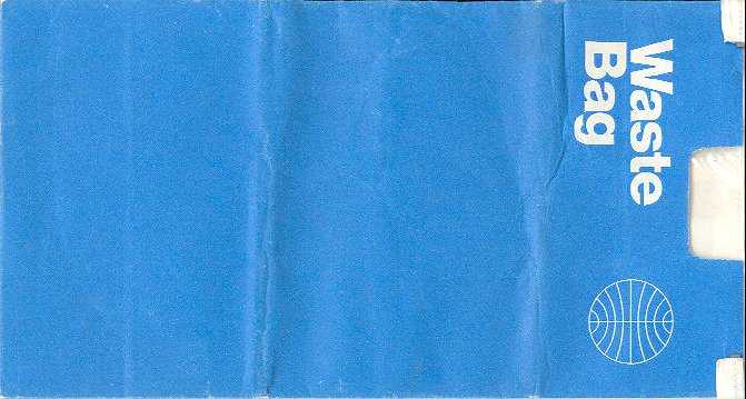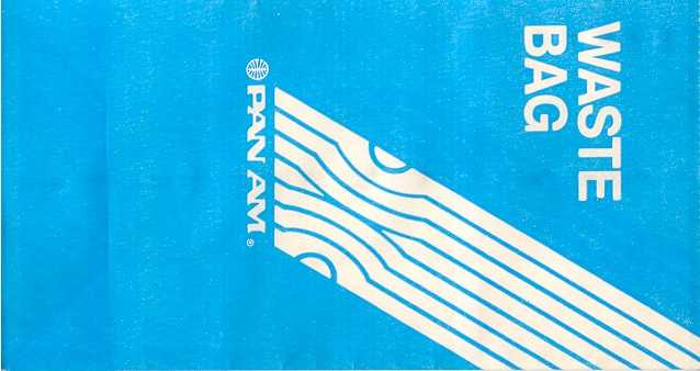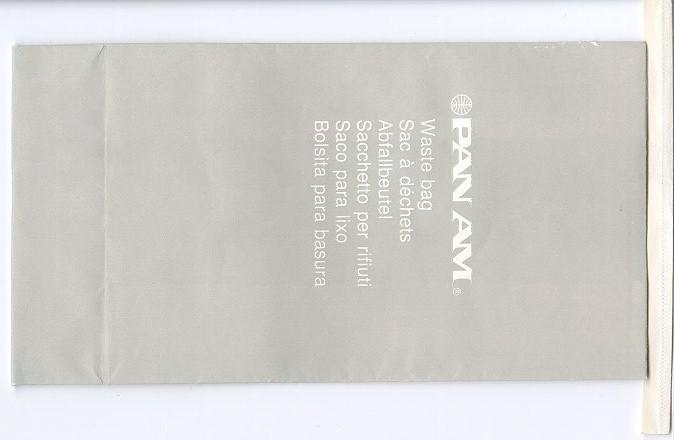 3Another vintage "Waste bag" from good old Pan Am. This one has no airline name, only logo. A Kard-o-Pack information tab on base of bag. They claim that the bag is waterproof and airtight(!) patented. Thanks to Bruce Kelly. Pan Am