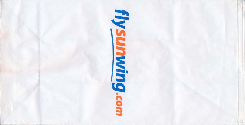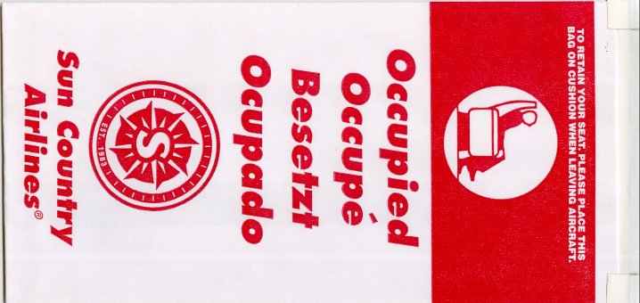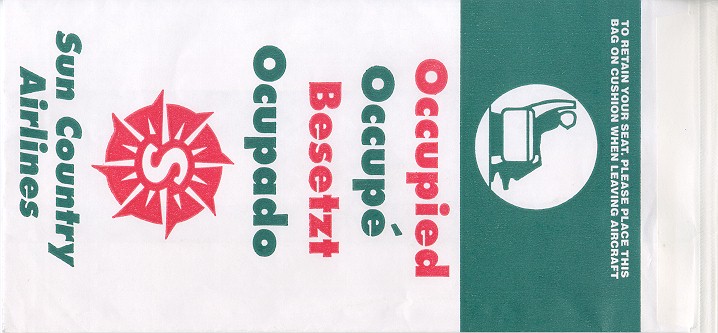 1Minneapolis based US airline. This bag doubles as a seat occupied marker. Strong horizontal closing wire. Thanks to Oliver Conradi Sun Country