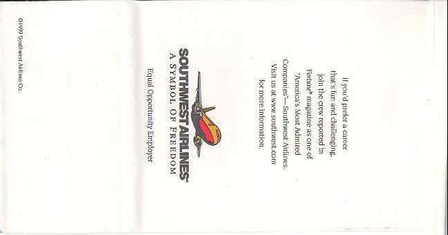 ExpressFounded in USA 1981. Cost per seat-mile was half of the industry average. Enormous growth from 1981 to 1986. Stock price skyrocketed, many employees became millionaires. “Crashed and burned” in 1987/1988. High quality bag. Thanks to Roger Macrae. SongSong is a domestic low fare airline operated by Delta Airlines. Bag made of thick plastic material with peel off label on back for closing. The bag doubles as seat occupied marker (in six languages). Thanks to Freddy Witte. Southwest