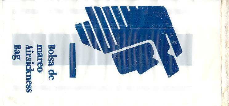 Airlines 1Another anonymous bag, this time from Northwest Airlines, to shy to put their logo on the bag. "FOR MOTION DISCOMFORT. Call flight attendant for bag disposal". Dark blue bag with English text and white stripe, horizontal closing wire. Thanks to Fausto Labruto. Northwest