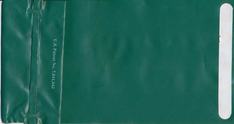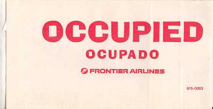 Yet another Vintage Eastern bag, doubles as photo bag. Horizontal closing wire and flat base with bagmaker Chase. Thanks to Richard Rosichan. Frontier Airlines 1A "Kard-o-Pak" bag with double use as occupied seat marker. Horizontal closing wire. Thanks to Robert Florida. Frontier Airlines 2An all green bag in thick plastic material, heavy duty. Flat base with "U.S. Patent No. 7,041,042". Adhesive tab on back for closing. No logo or other identification. Thanks to Justin Dodge. Frontier Airlines