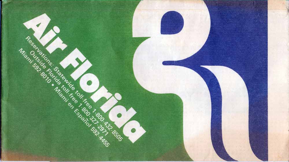 Florida 1Air Florida repeat its name and logo all over the bag in blue and green. Horizontal closing wire. Thanks to Roger Macrae Air
