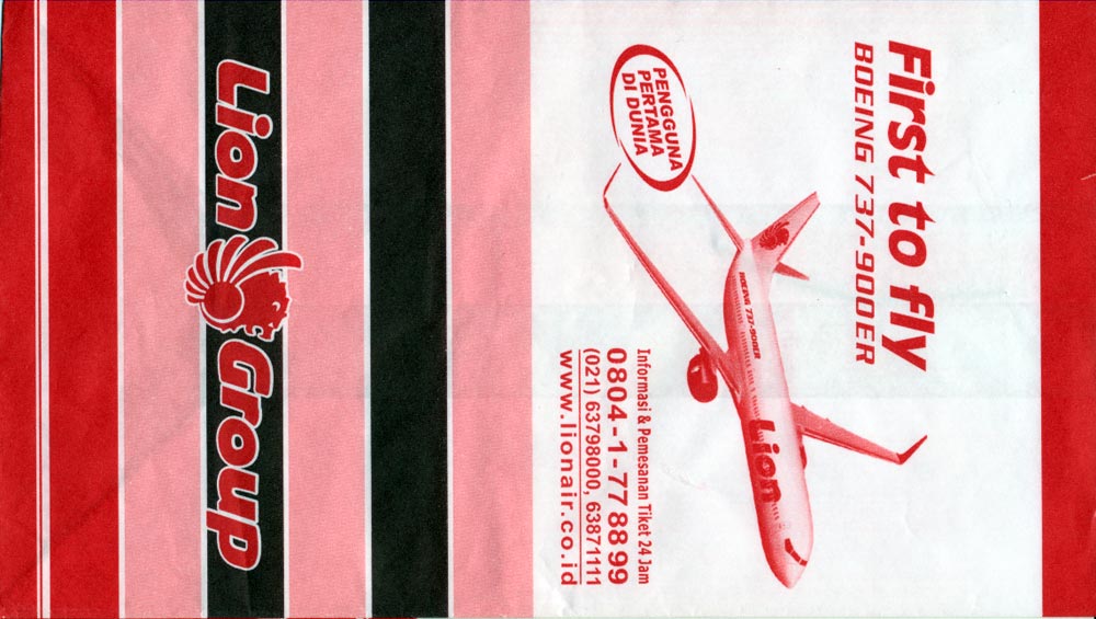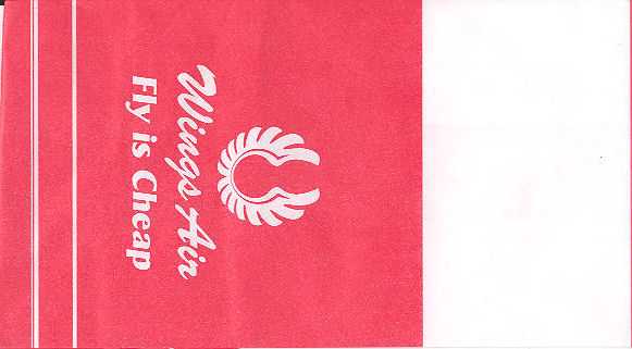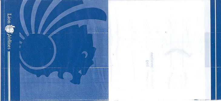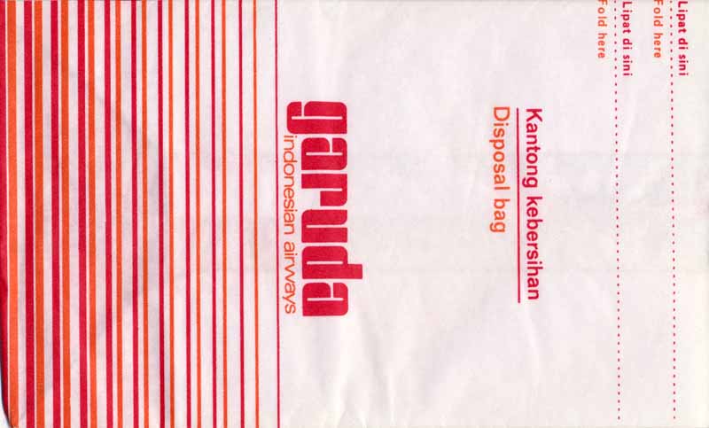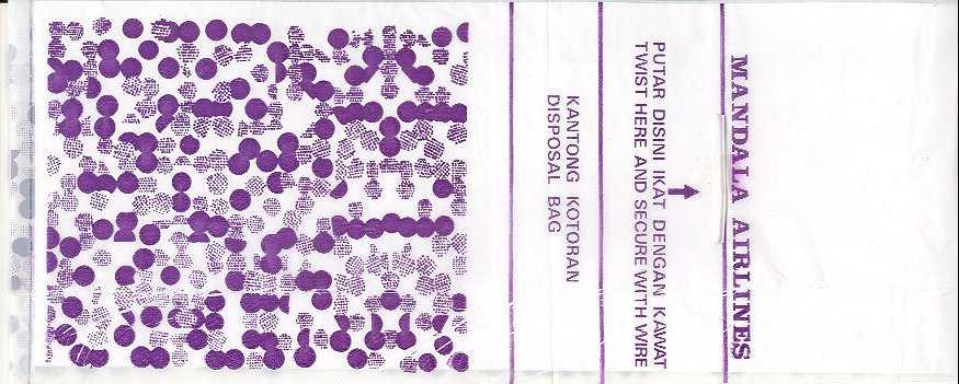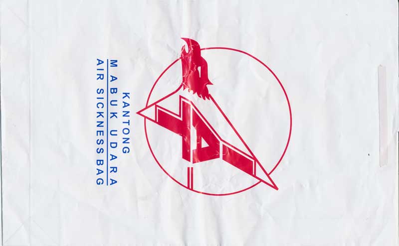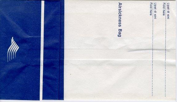 AirlinesA narrow long bag from Indonesian Bouraq. Double dotted folding lines on back. Thanks to Senno van der Velde. Buddha Air