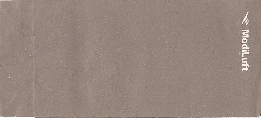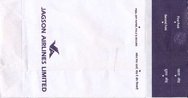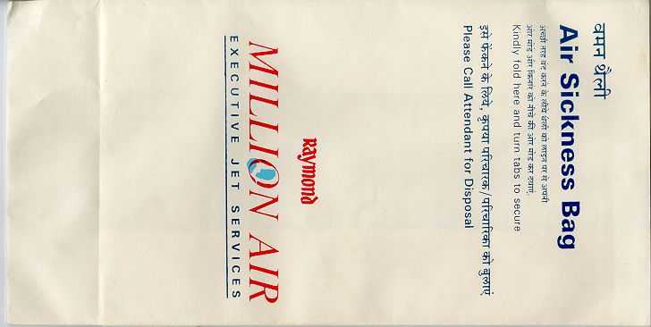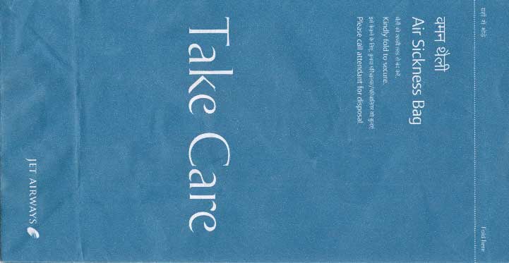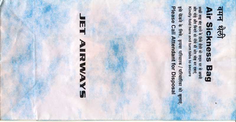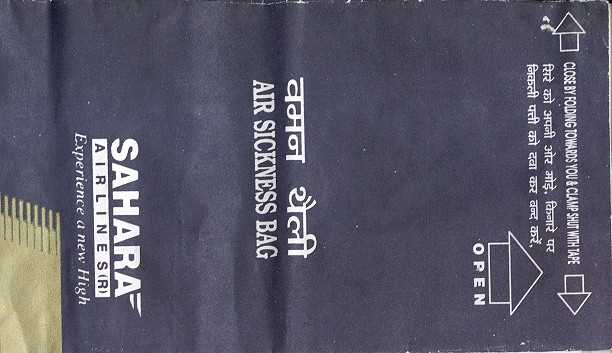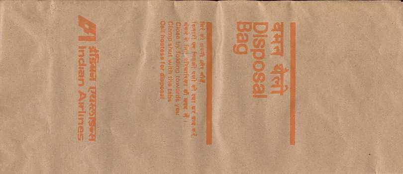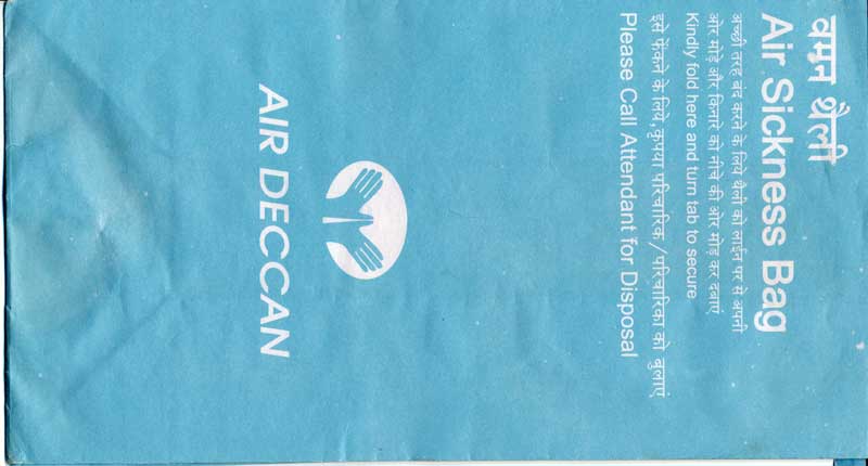 DeccanAir Deccan, a low cost carrier of India with a light blue bag. Instructions in English and Hindi. Flat base and horizontal closing wire. Thanks to Josef Gebele Air