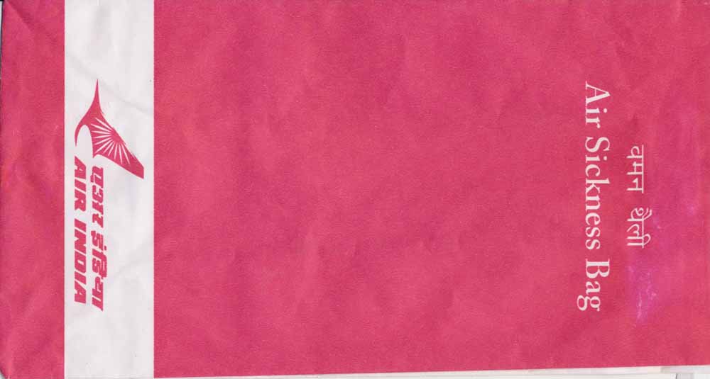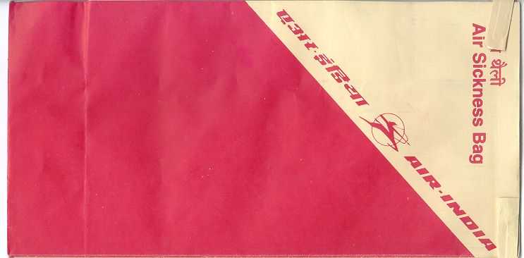 India 8A beutiful pattern on this old Air India bag. Flat base and folding instructions on back. Thanks to Richard Rosichan. Air