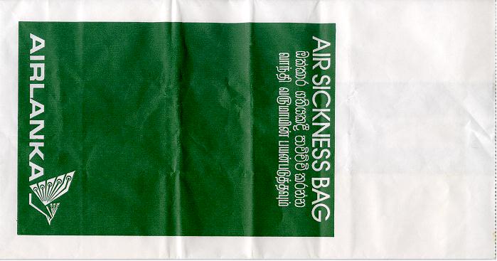 4SriLankam (former AirLanka) operating a fleet of Airbus on international routes. Brown and white bag with tear off top and vertical closing wire. Thanks to Thomas Ansorge Star