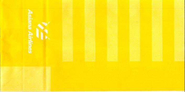 3A South Korean based airline. Sharp yellow color with only logo and name. No closing mechanism. Thanks to Bruce Kelly. Asiana Airlines