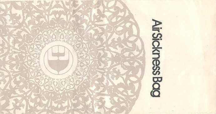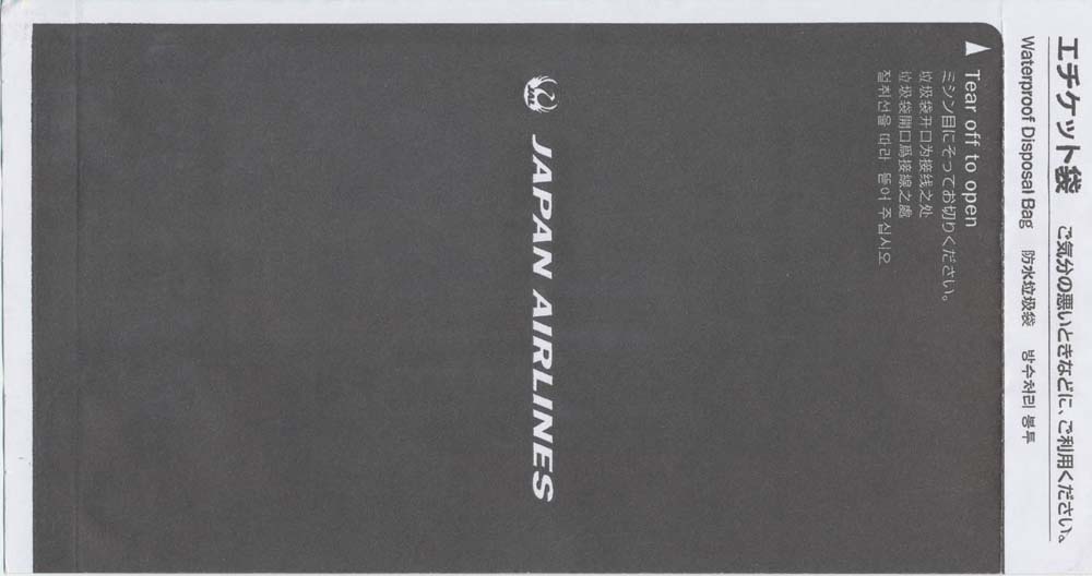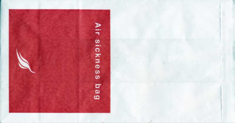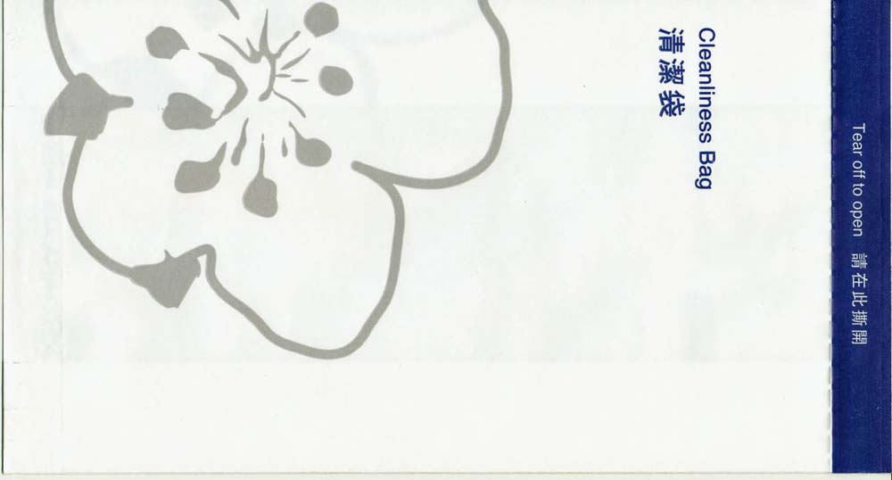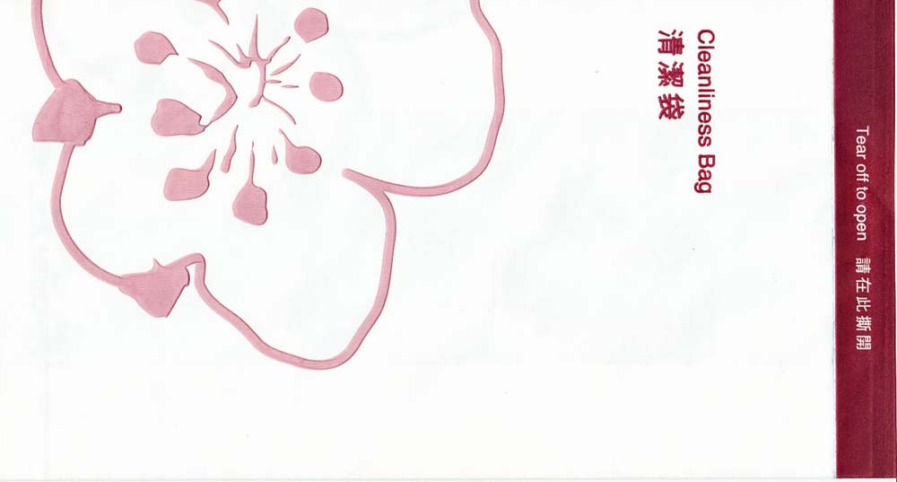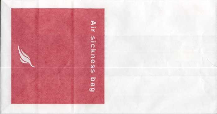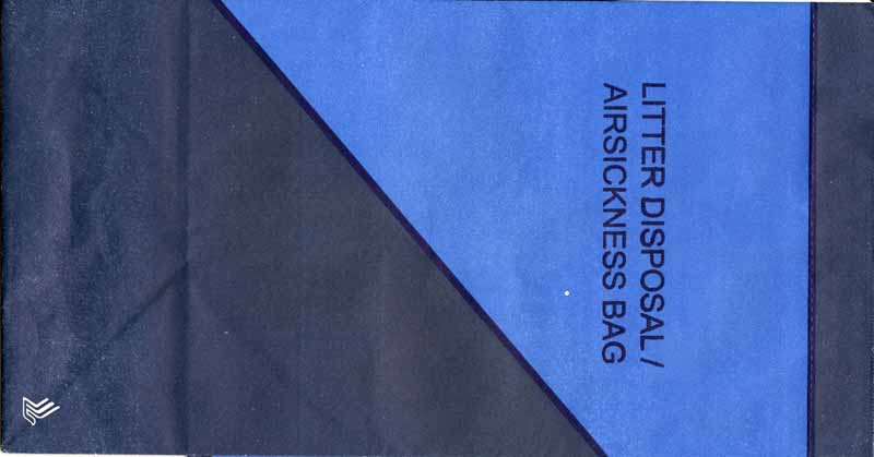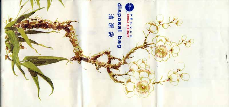 8One of the most beautiful bags in the collection. Pointy base and instructions in two languages on back. Thanks to Mark Wilson China Airlines