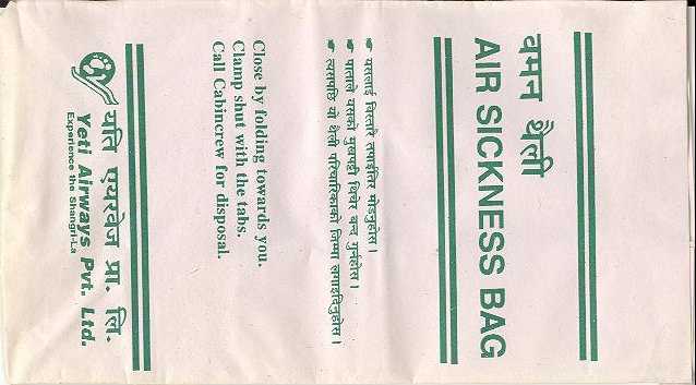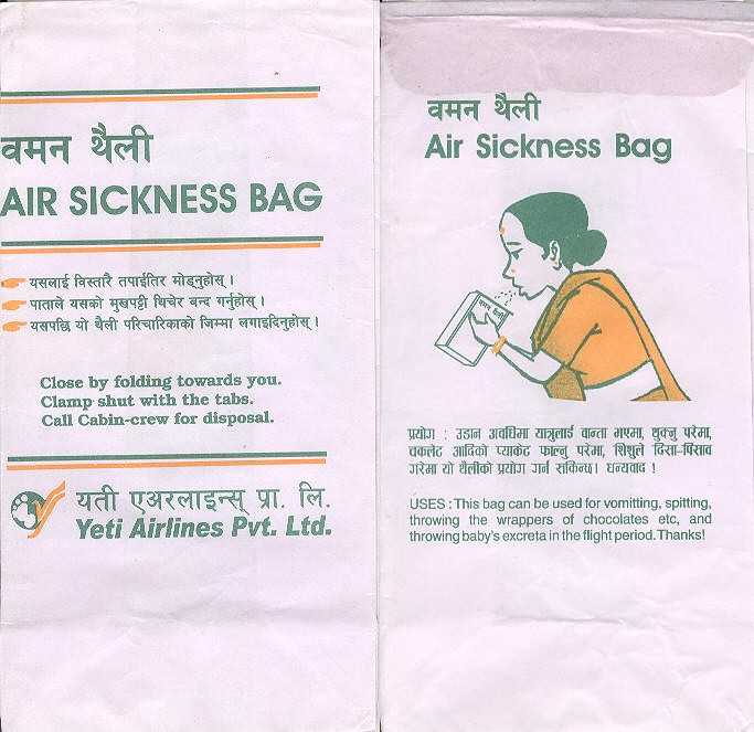 explicit explains the use of the bag. Nepalese Buddha Air does this very