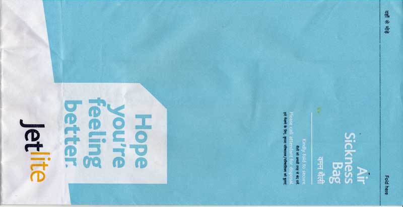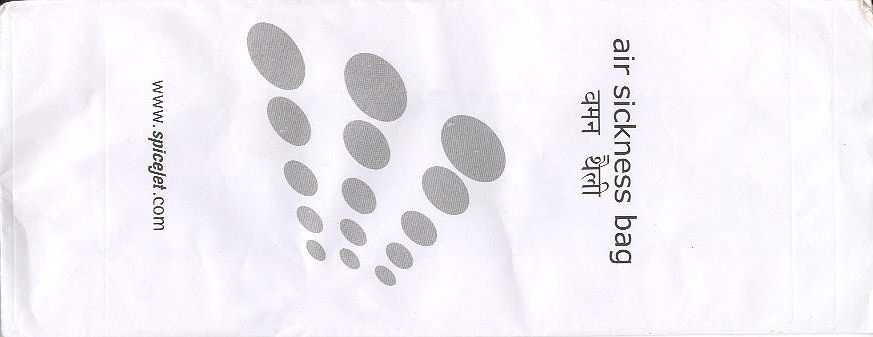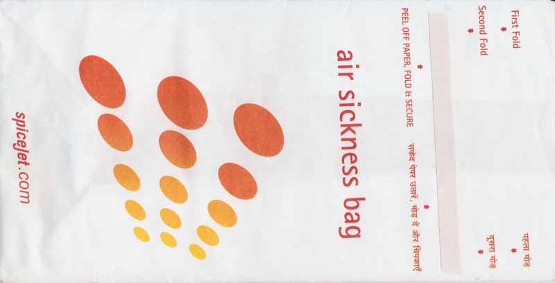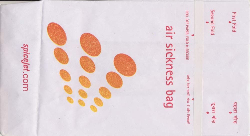 1Spicejet is an Indian low cost airline. Long narrow bag with instructions in two languages and adhesice closing tab on back. www.spicejet.com Thanks to Nico Snels. Spicejet