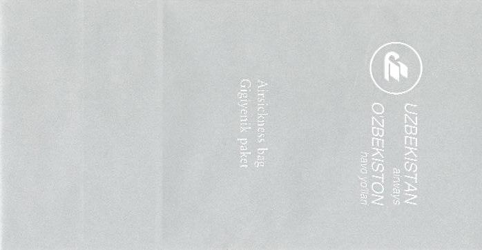 AirwaysNice colorful bag from this private Bangeladesh airline not to be confused with the US airline United Airlines. Thanks to Ken Schafermeyer. Uzbekistan AirwaysBeautiful bag from Uzbekistan Airways. Deep blue background color with white and gold print in a nice pattern that will also remind you what eventually will go in the bag. One of the most beautiful bags in the collection. Click to enlarge and enjoy the full beauty of it. Flat bottom and star logo in pleat. Excellent work! Thanks to Manfred Kleber. Uzbekistan Airways 2Uzbekistan Airways has left it's nice blue/gold design for a more dull Lufthansa-style grey bag. Flat base and star in pleat. Thanks to Torsten Radtke. Vietjet