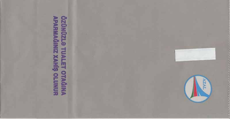 Vladmir Hlasny. PT Aviastar Mandiri, operating as Aviastar is an Indonesian growing domestic passenger airline based in East Jakarta, Jakarta, Indonesia. Flat base, folding instructions on back. Thanks to Thomas Ansorge. AwairThe airline was established as Awair (Air Wagon International) in 1999. On 1 December 2005 Awair changed its name to Indonesia AirAsia in line with the other AirAsia branded airlines in the region. Small bag with flat base, vertical closing wire and instructions on back. Thanks to Mark Wilson. AZALAzerbaijan Airlines is part of the Azerbaijan Hava Yollari Closed Joint Stock Company, the biggest Azerbaijani airline and national flag carrier. Headquartered in Baku. 3A Plastik in pleat. Thanks to Vidas Vekerotas. Bali