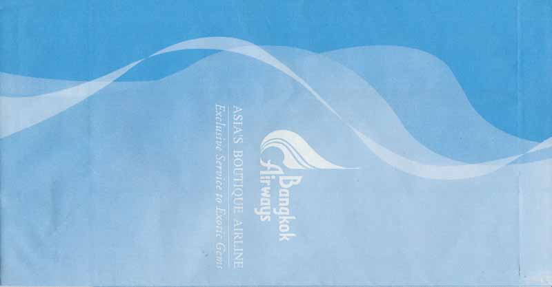 8Yet a new nice design frpm Bangkok Airways. Flat base with flyerbonus ad. Vertical closing wire, web URL in pleat. Thanks to Wolfgang Luthje. Bangkok Airways