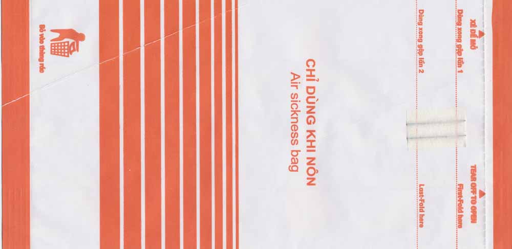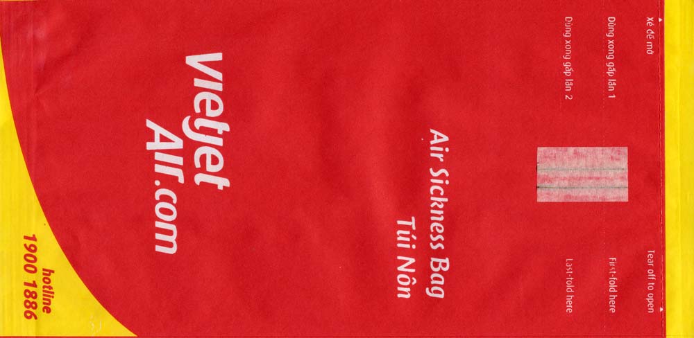Vietjet is a Vietnamese private low cost airline. VietJet Air serves 23 domestic and 10 international destinations. Colorful bag with tear off top, folding instructions and vertical closing wire. Thanks to Frank Mulliri. Vietnam Airlines