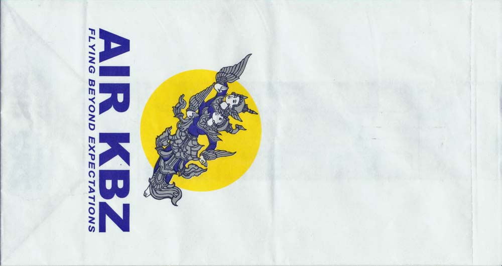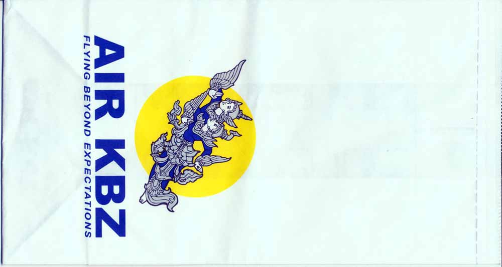 KBZ 1Air KBZ is a privately owned domestic Burmese (Myanmar)airline based in Yangon. Nice bag with instructions on back, vertical closing wire and contact information on base. Thanks to Thomas Ansorge. Air