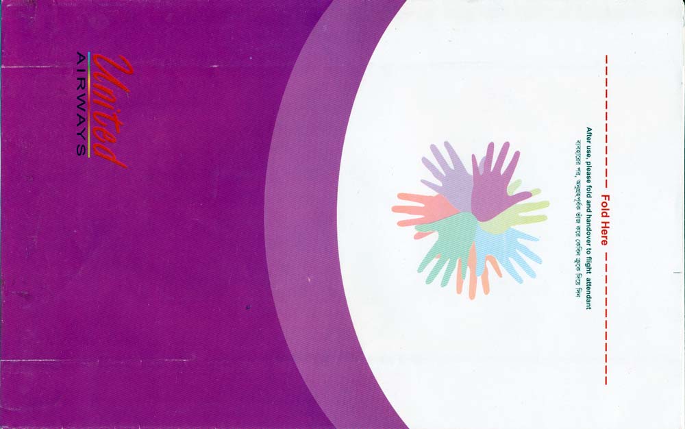 Air 3Nice colorful bag from this Taiwanese airline. Tear off top and peel off paper for closing. Same bag design as Eva Air. Thanks to Xusheng Chen. United